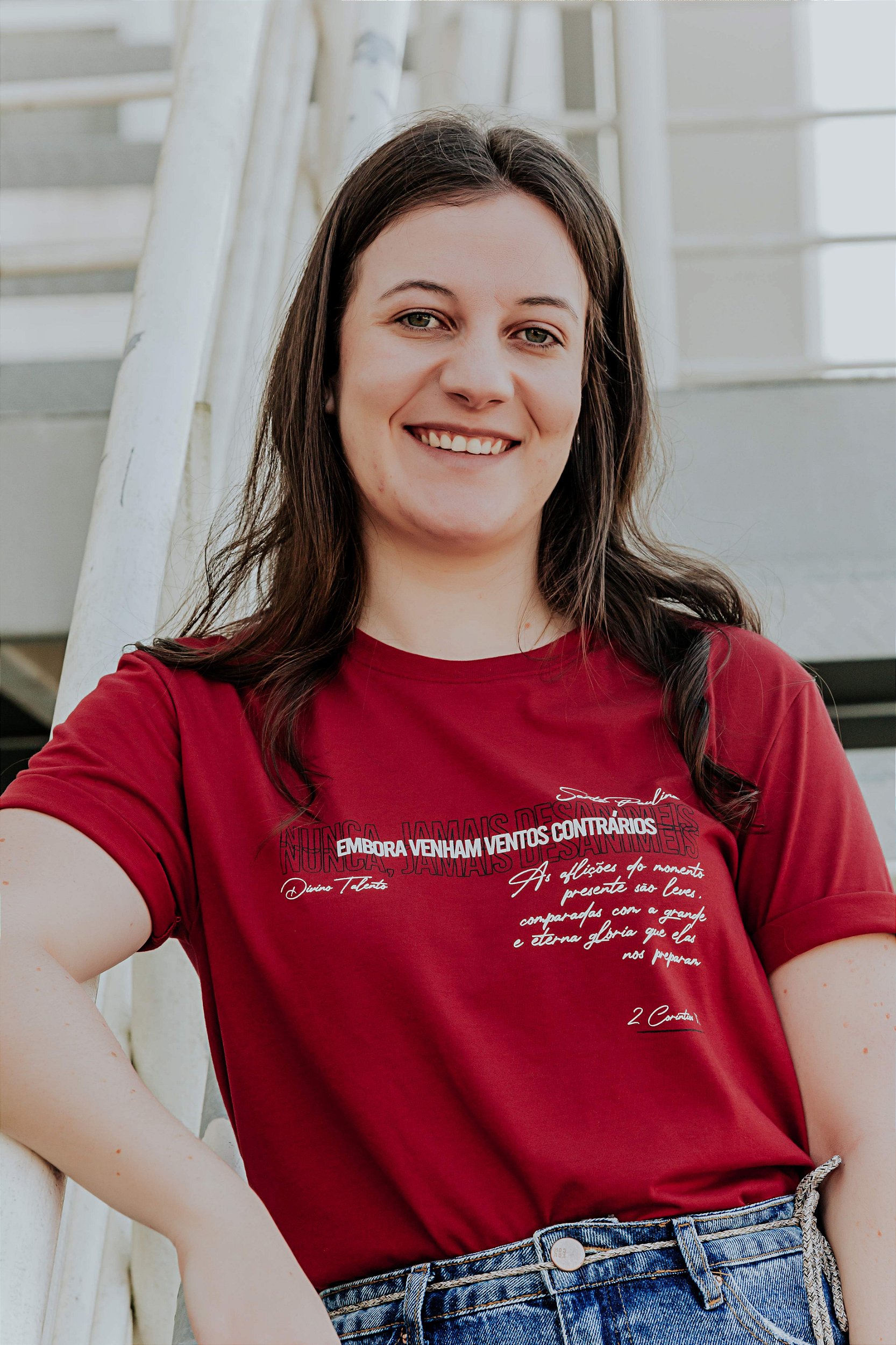 A camiseta com estampa de Santa Paulina e a frase 'Nunca jamais desanimeis, embora venham ventos contrários' traz uma mensagem de coragem e perseverança, inspirada na vida de Santa Paulina. Ela nos ensina a manter a fé e a esperança, mesmo diante das dificuldades. Feita com materiais sustentáveis, essa peça é ideal para quem busca força para enfrentar os desafios da vida, seguindo o exemplo de fé inabalável de Santa Paulina.