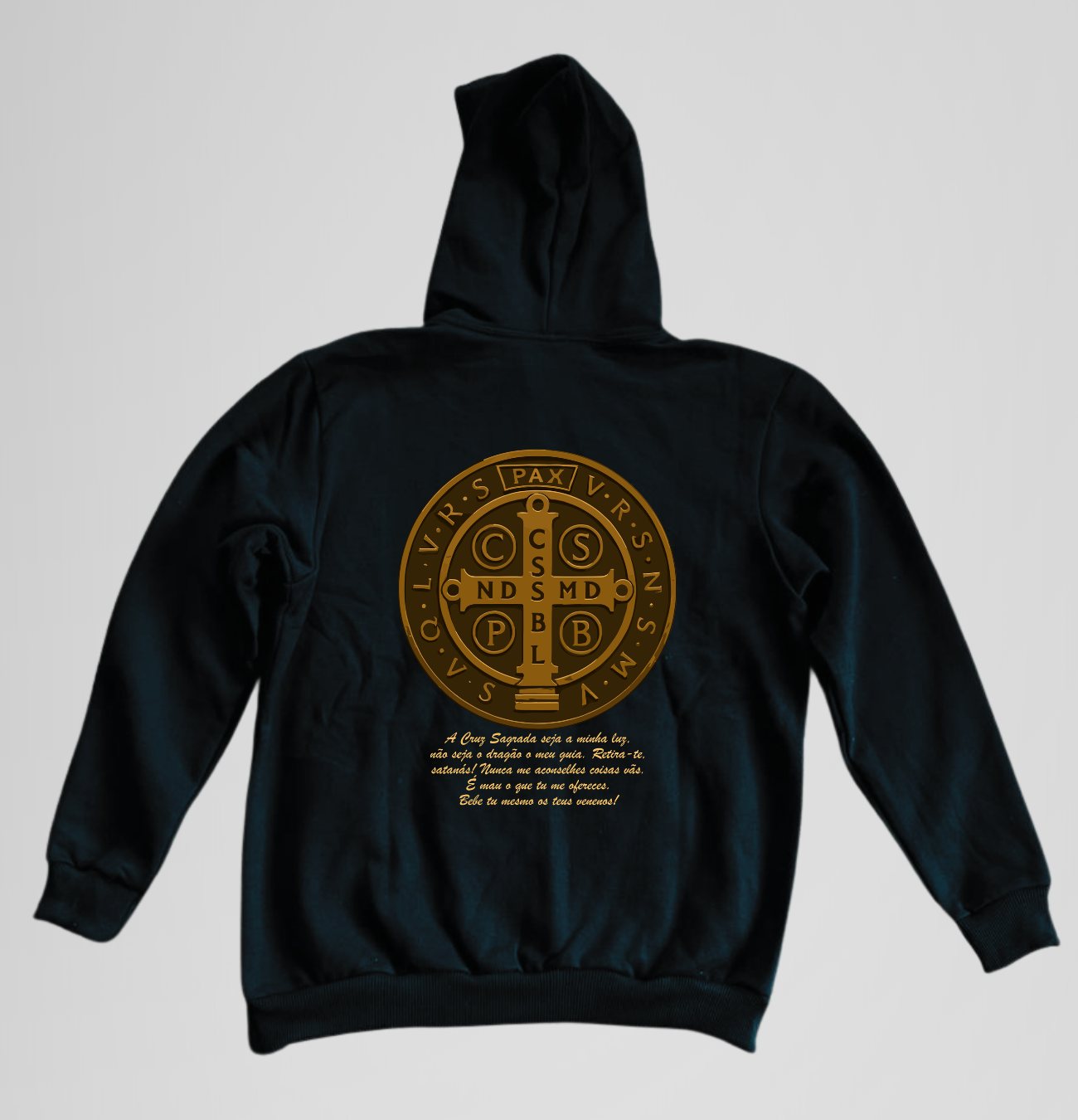 A estampa destaca a Medalha de São Bento, um dos sacramentais mais fortes da nossa fé, reconhecido por afastar o mal e proteger quem o usa com confiança e oração. Com a inscrição profética "Crux Sacra Sit Mihi Lux" (A Cruz Sagrada seja minha luz), esta peça serve como um lembrete diário para caminhar sob a luz de Cristo e resistir a todas as tentações. Ideal para quem busca um escudo espiritual aliado ao conforto e elegância.